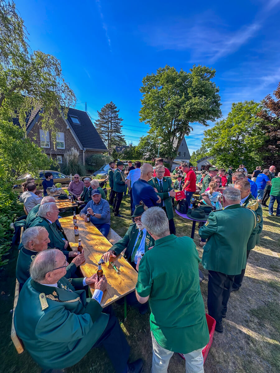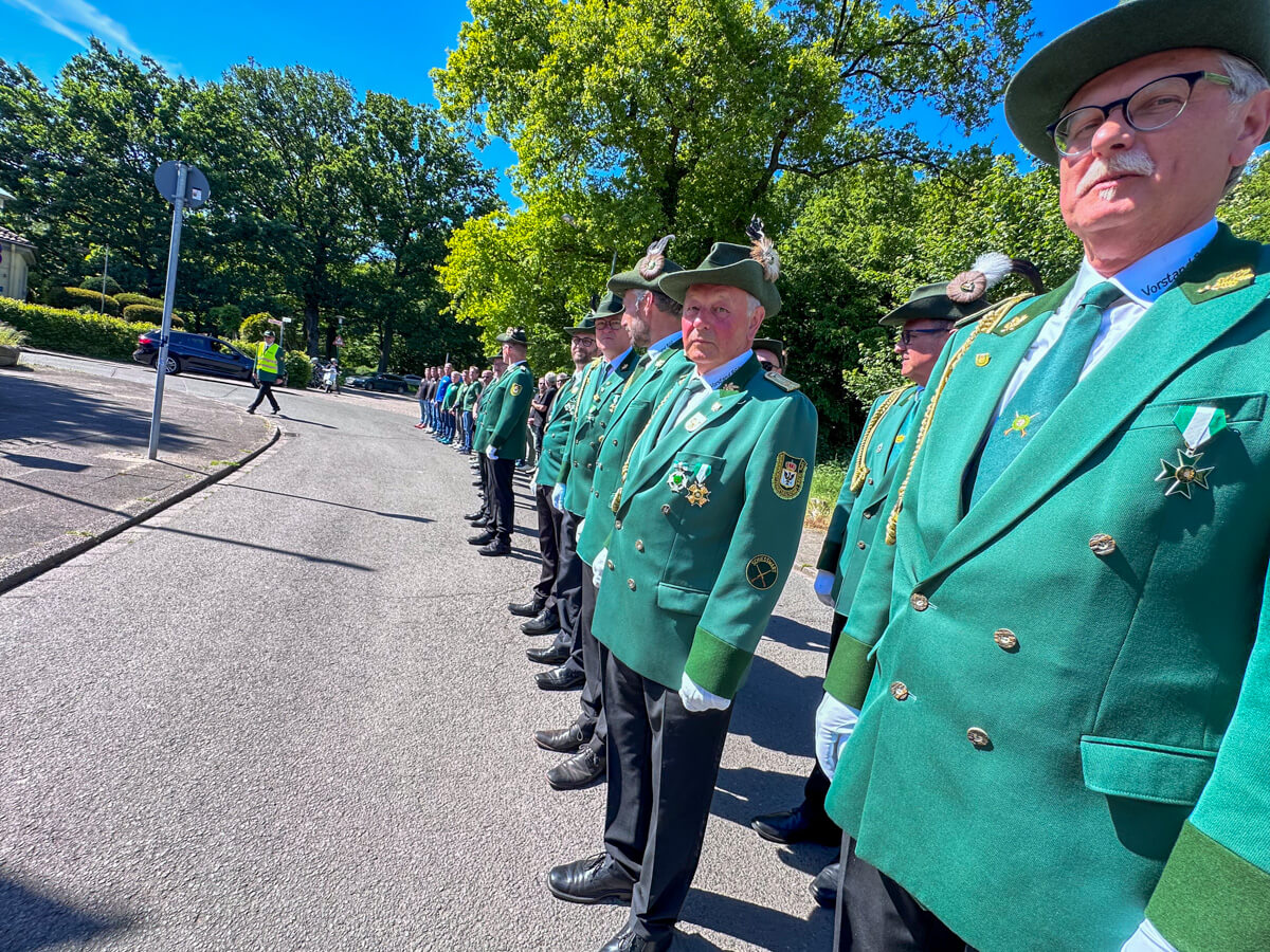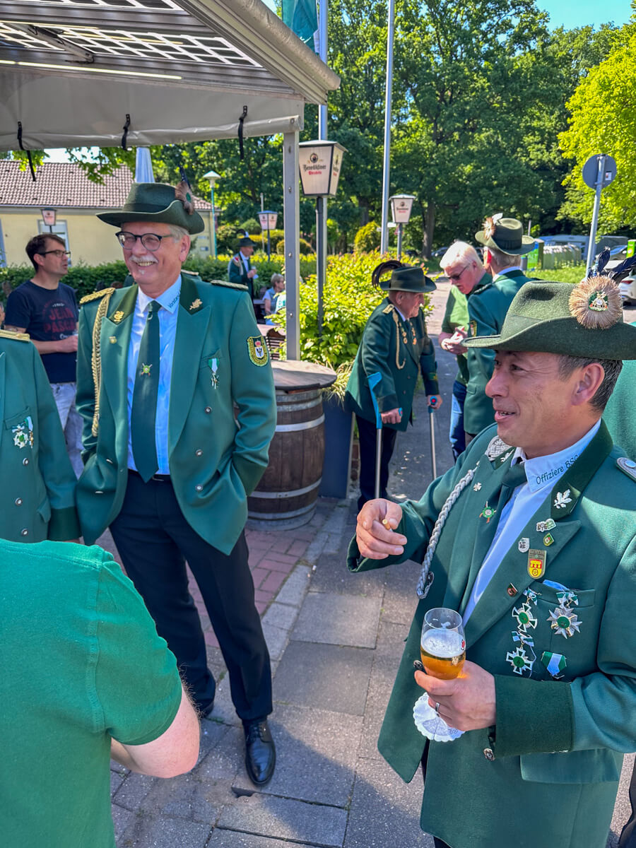 Bei strahlendem Sonnenschein und besten Bedingungen versammelten sich am gestrigen Samstag zahlreiche Mitglieder des Schützenvereins zum diesjährigen Kompanie-Ausmarsch am Vereinslokal. Nach einem ersten Erfrischungsgetränk und der Begrüßung durch unseren Major und den Präsidenten setzte sich der Marschzug in Bewegung — musikalisch begleitet vom Spielmannszug der Freiwilligen Feuerwehr Vierbaum.