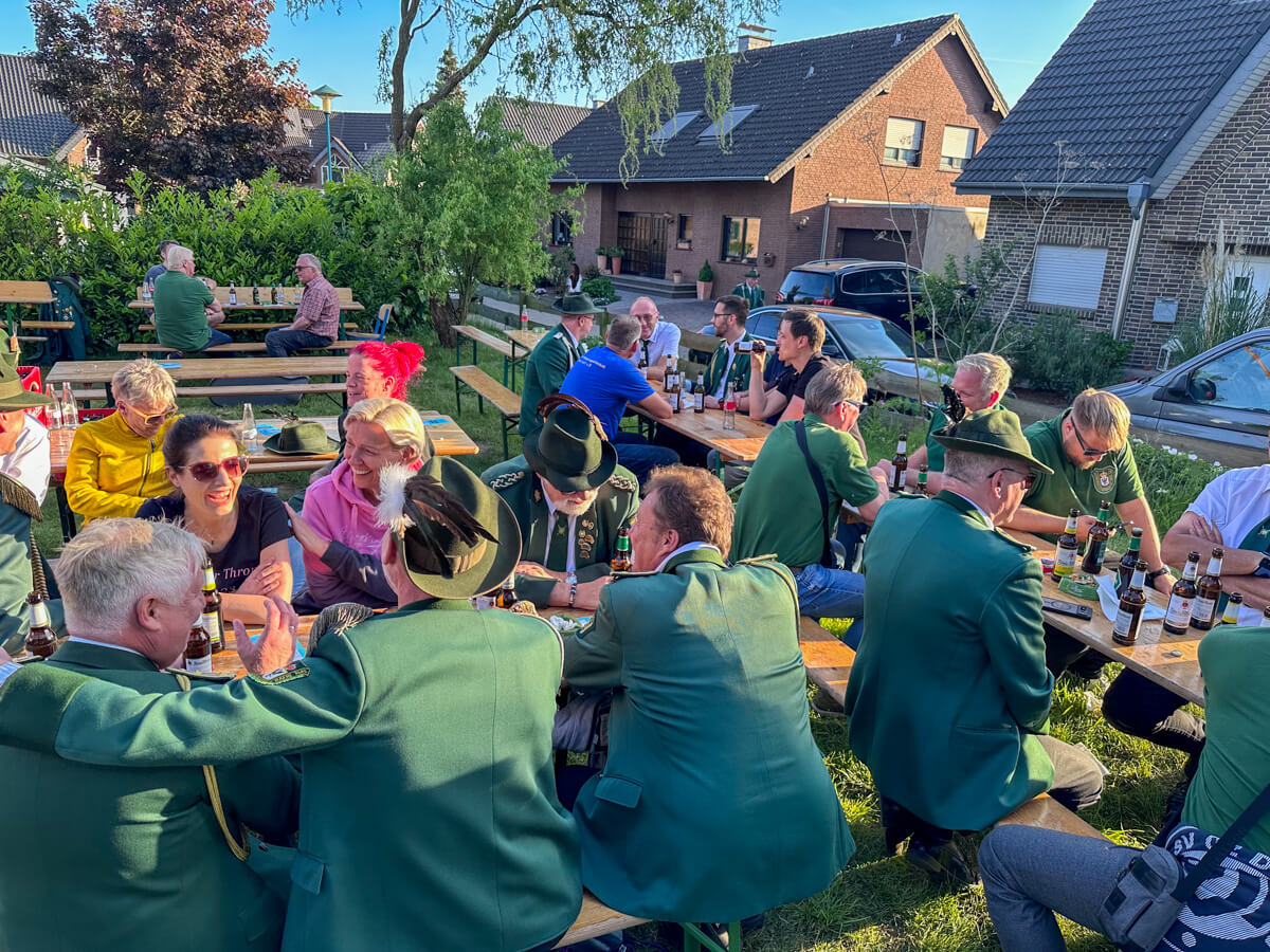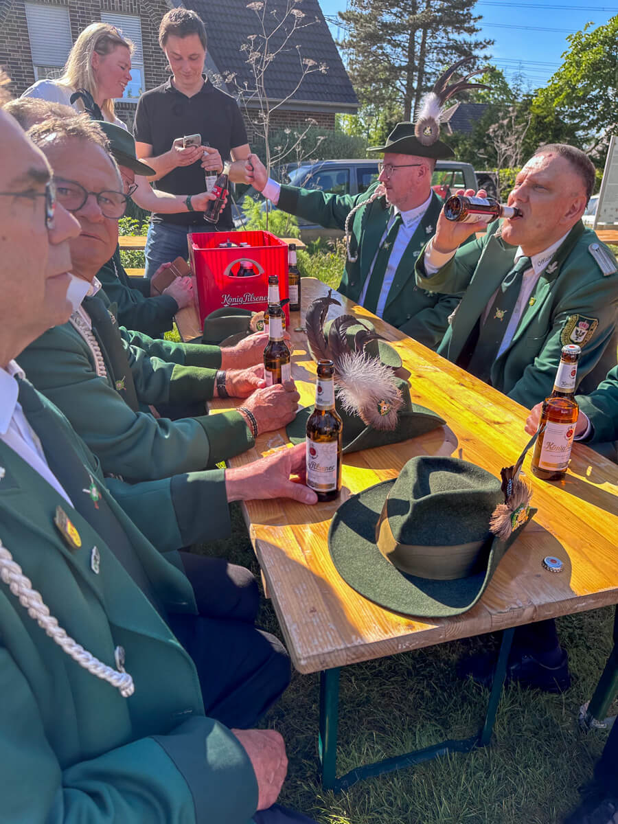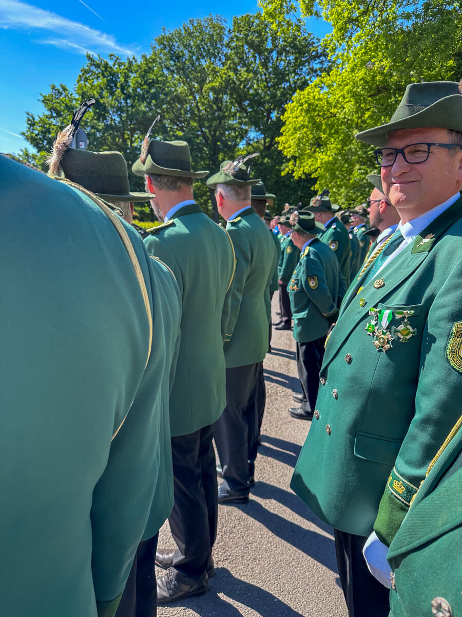 Bei strahlendem Sonnenschein und besten Bedingungen versammelten sich am gestrigen Samstag zahlreiche Mitglieder des Schützenvereins zum diesjährigen Kompanie-Ausmarsch am Vereinslokal. Nach einem ersten Erfrischungsgetränk und der Begrüßung durch unseren Major und den Präsidenten setzte sich der Marschzug in Bewegung — musikalisch begleitet vom Spielmannszug der Freiwilligen Feuerwehr Vierbaum.