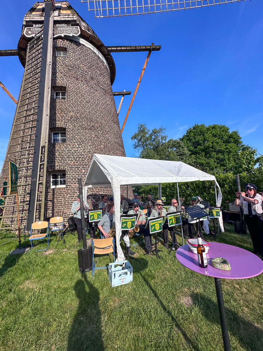 An der Mühle angekommen, wurden wir musikalisch empfangen vom Blasorchester Lohmühle. Die historische Kulisse, der blaue Himmel und die entspannte Atmosphäre luden zu tollen Stunden ein. Neben erfrischenden Getränken sorgte die traditionelle Wurst aus dem Kessel für das leibliche Wohl.