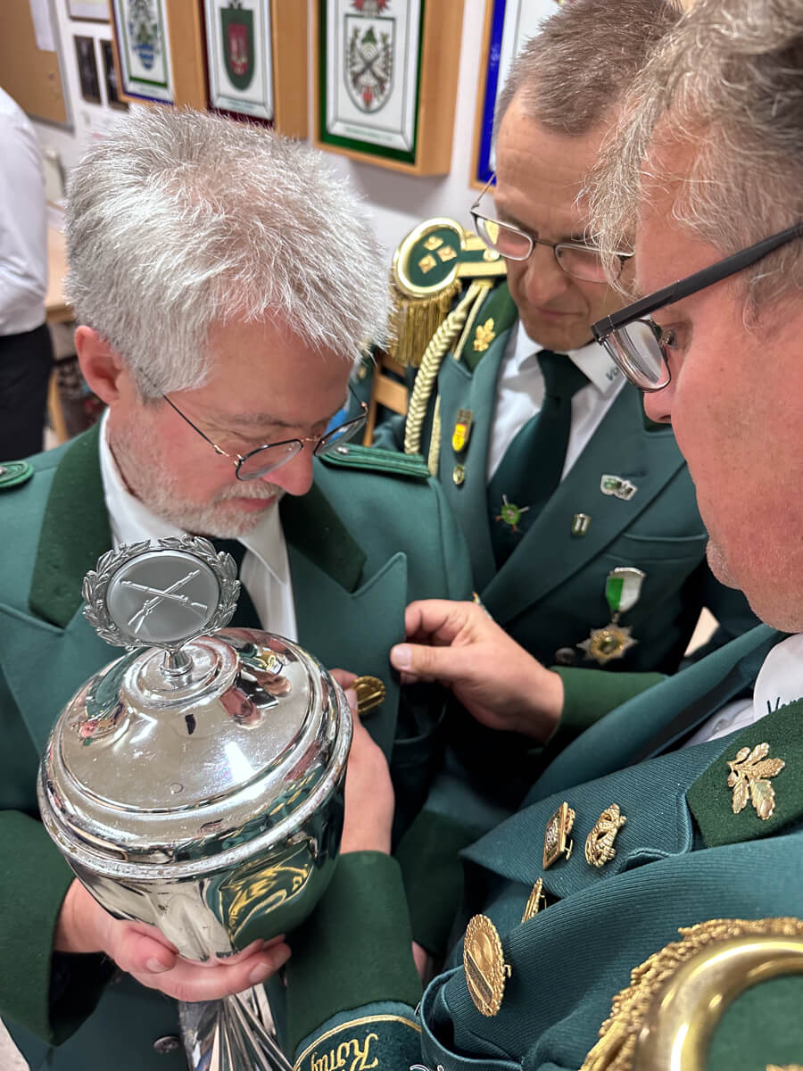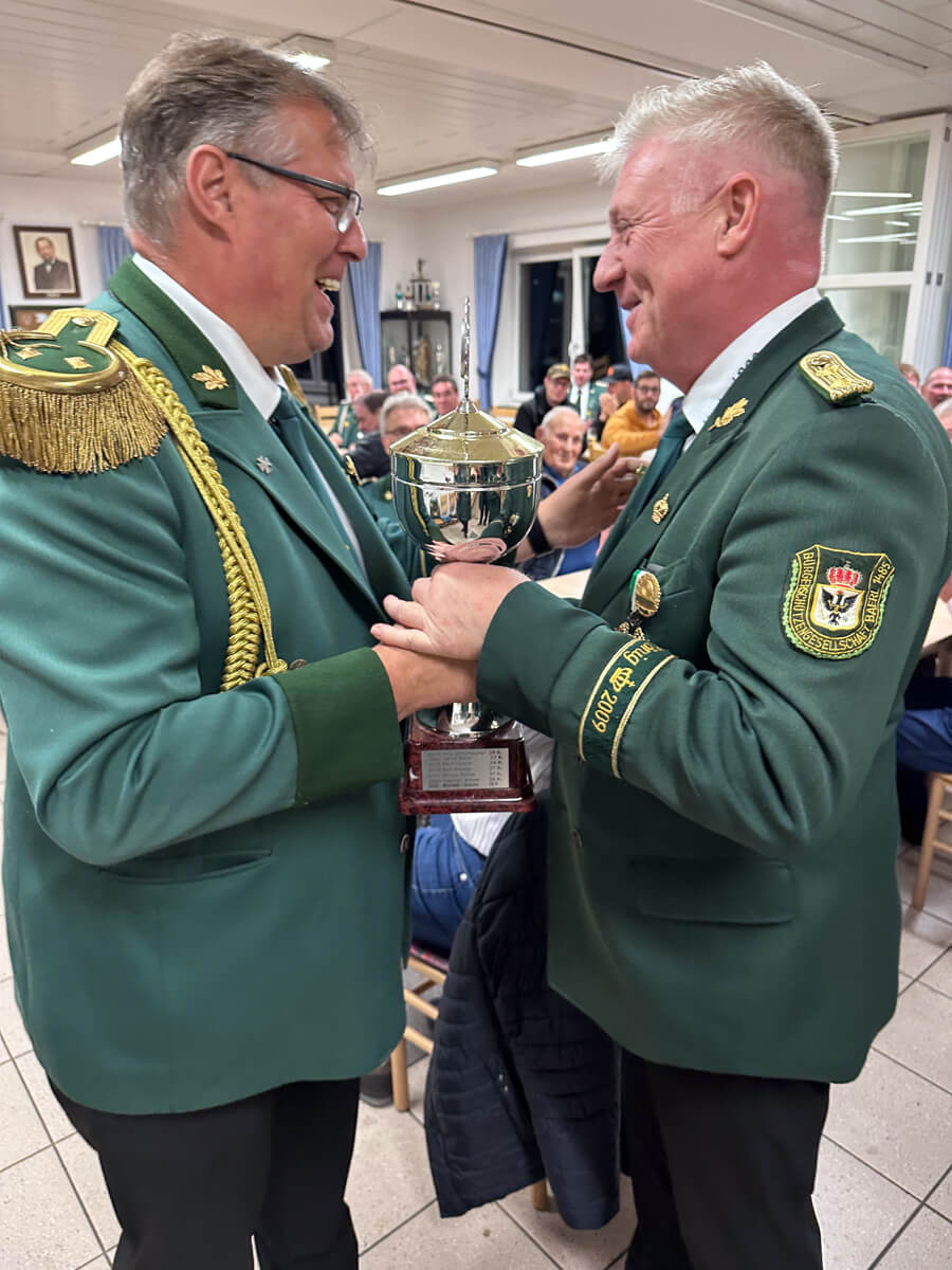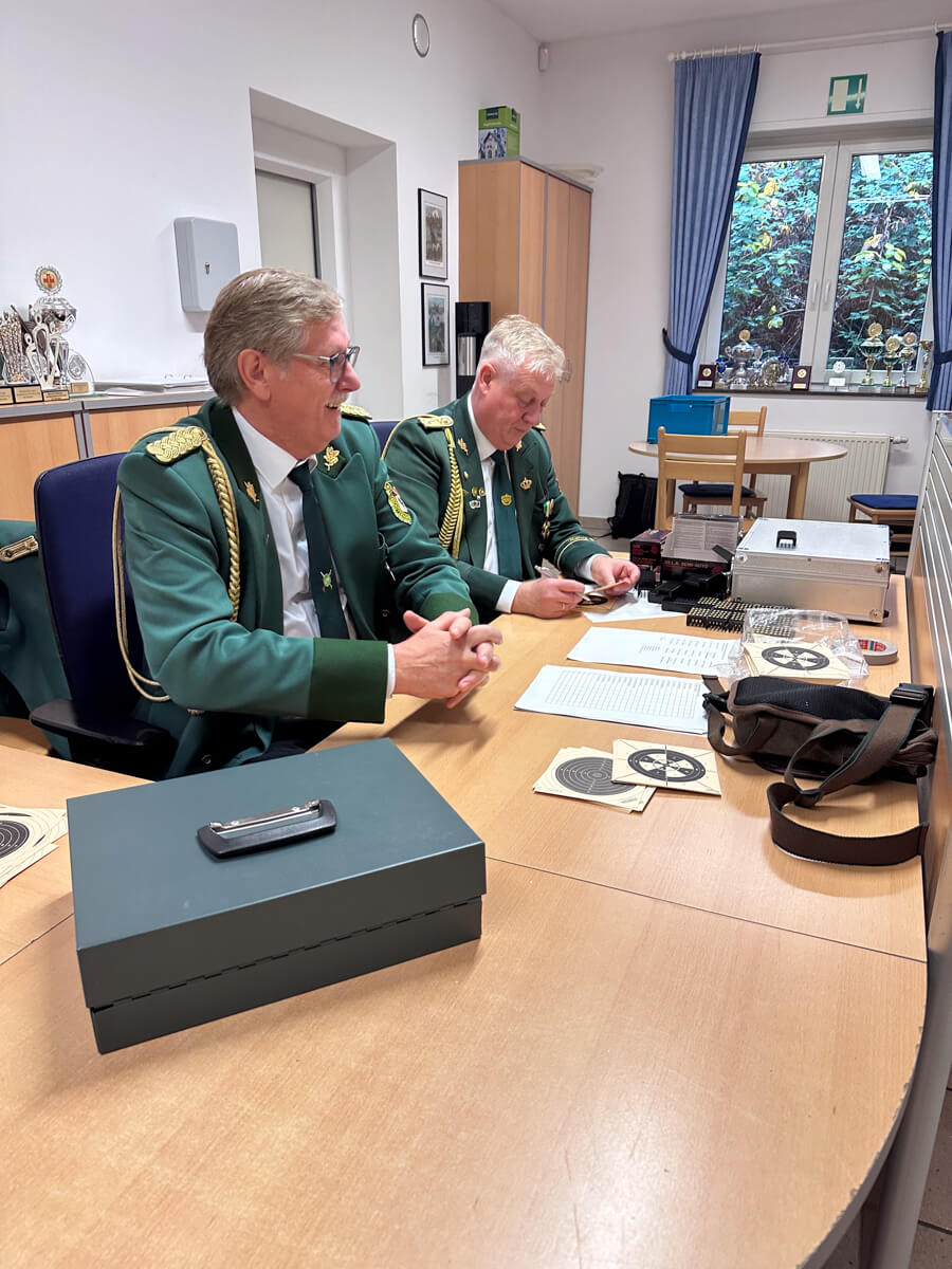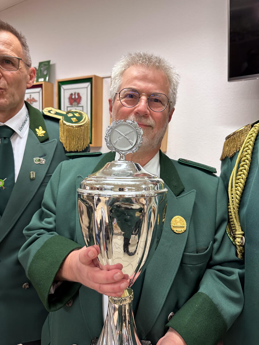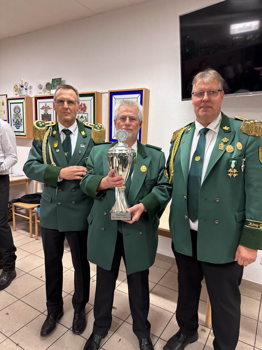 Nach insgesamt guten Schießergebnissen legte Michael (Mike) Pletziger mit 39 von 40 Ringen beim BSG-Vereinspokal vor. Erst in der Schlussphase schuf Heiko Kieselmann mit ebenfalls 39 Ringen den Ausgleich. Das damit erforderliche Stechen konnte Mike Pletziger mit 8 zu 6 Ringen für sich entscheiden. Damit sicherte er sich den damit verbundenen Titel Vereinsmeister 2025. Den 3.Platz errangen mit gleicher Ringzahl (38) Felix Glatter, Joe Hausmann und Wilhelm Pittgens.