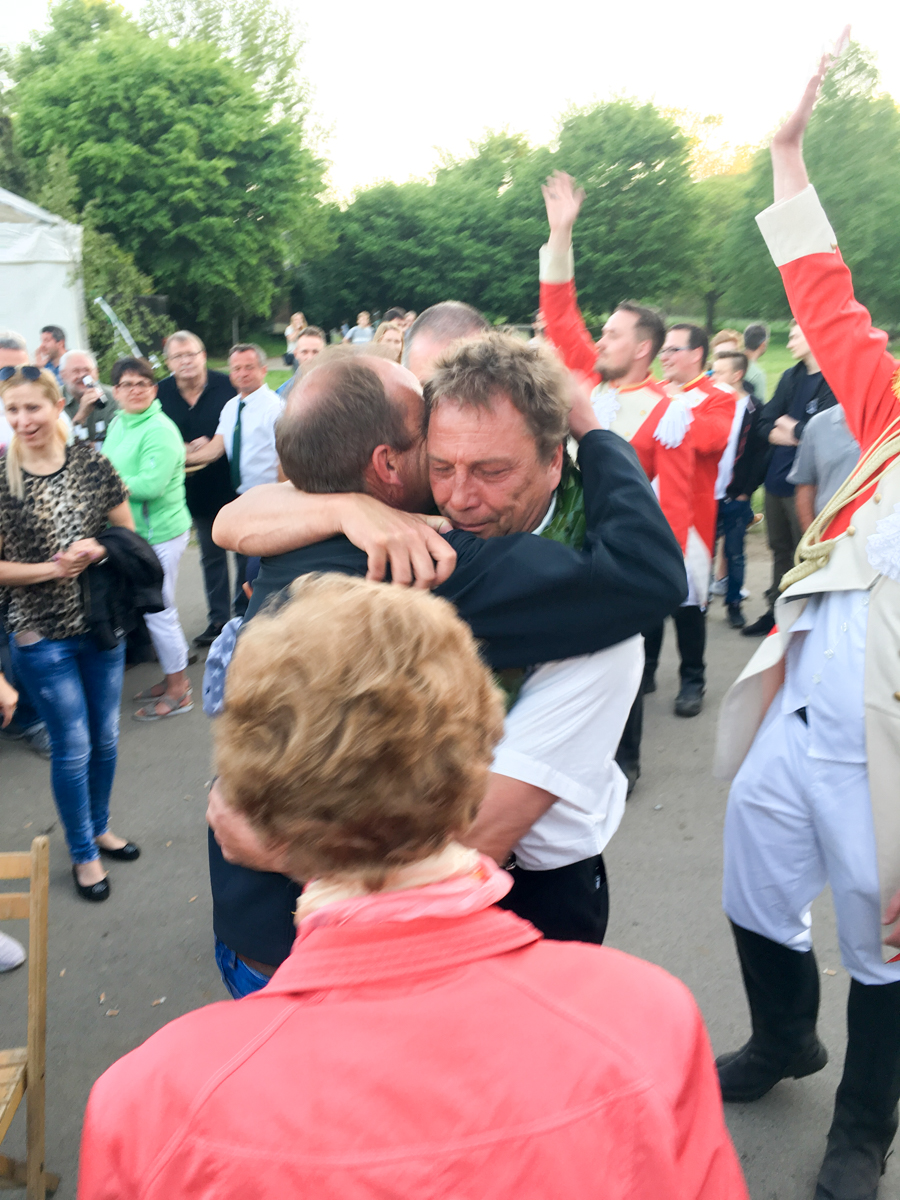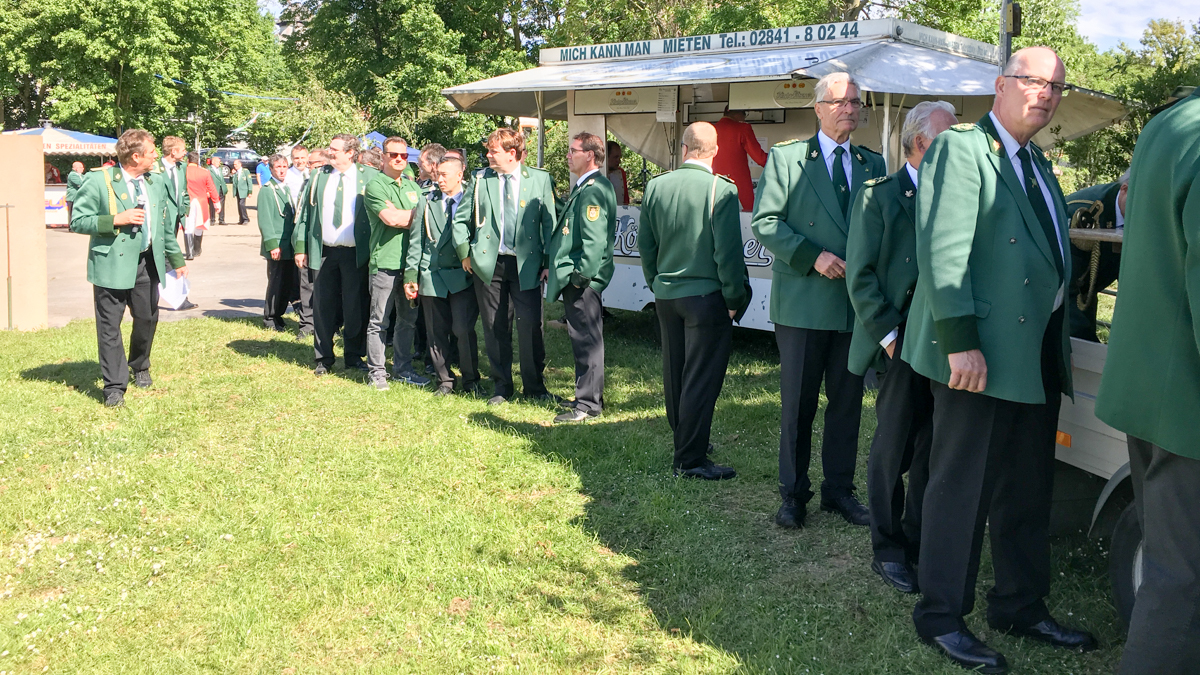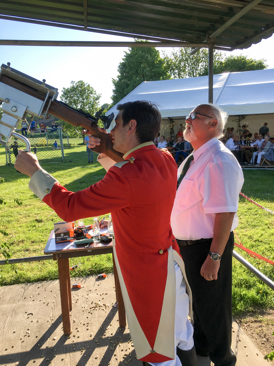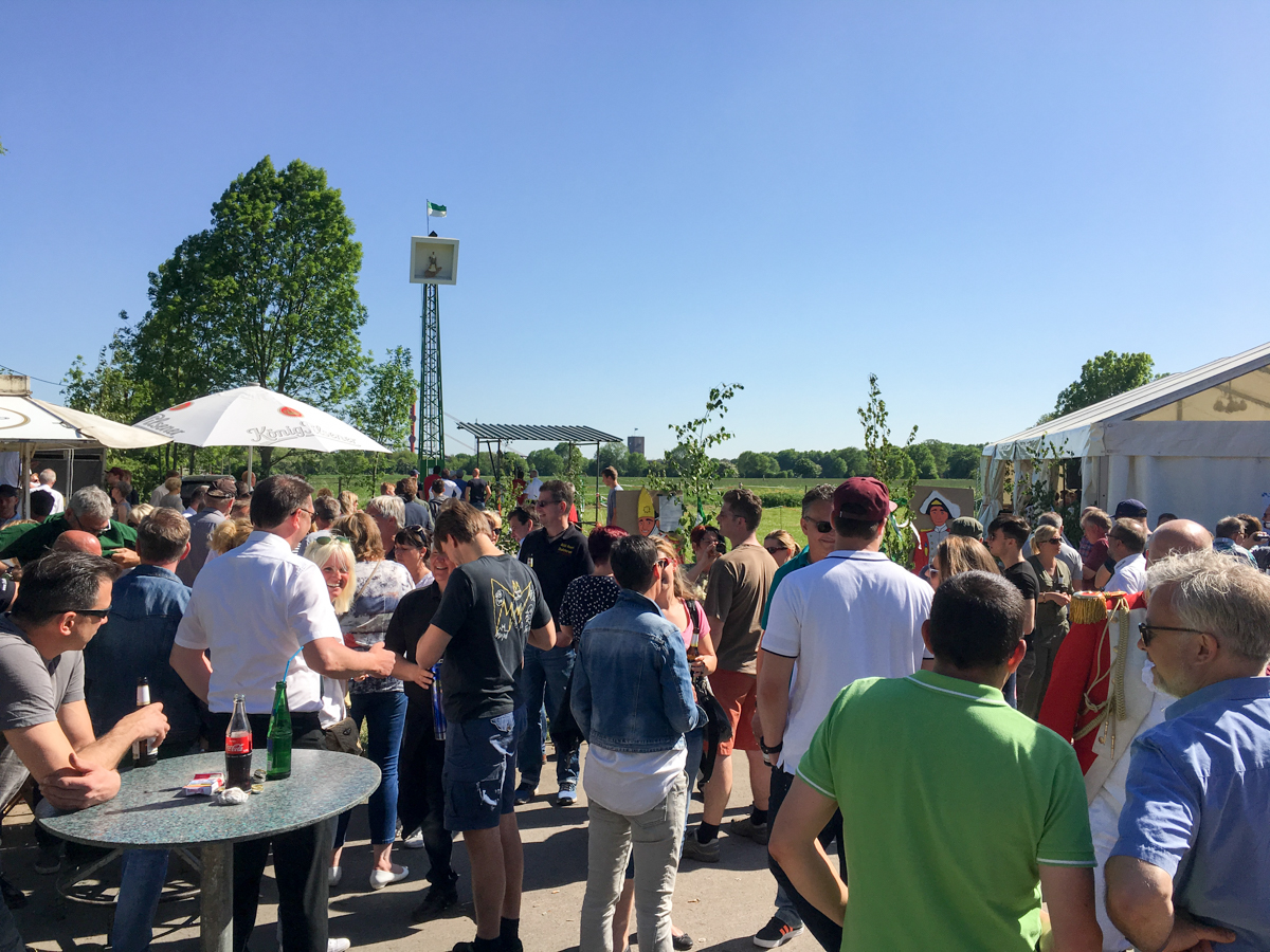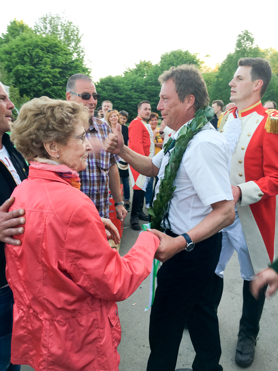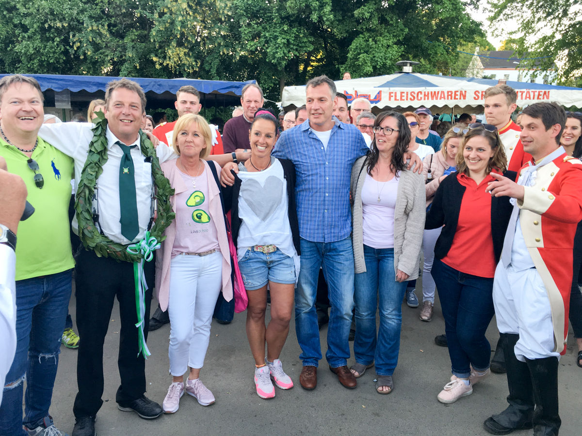 Bei genialem Sommerwetter und angefeuert von einer großen Zuschauermenge hatten sich Dirk Hollender, Andreas Kempken, Heinz Frütel, Nils Meyer, Stefan Heigbes und Kurt Dawirs dem äußerst spannenden und fairen Wettkampf gestellt. Nachdem Nils Meyer, aktiver Sappeur, schon einen großen Teil vom Fuß des Vogels abgeschossen hatte, gelang Heinz Frütel mit dem 217. Schuss um 20.15 Uhr der Treffer zum ersehnten Sieg und damit zur Königswürde.