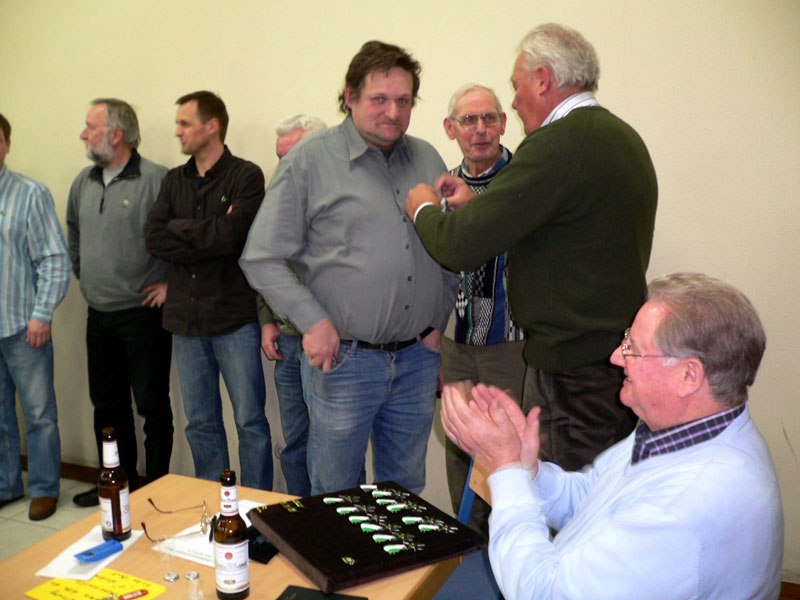 Mit der silbernen Ehrennadel für 25-jährige Mitgliedschaft wurden ausgezeichnet: Horst Wisußek, Ralf Pellen, Hans-Jürgen Weichert, Rolf Dresler, Günter Schülling und Rainer Falk.