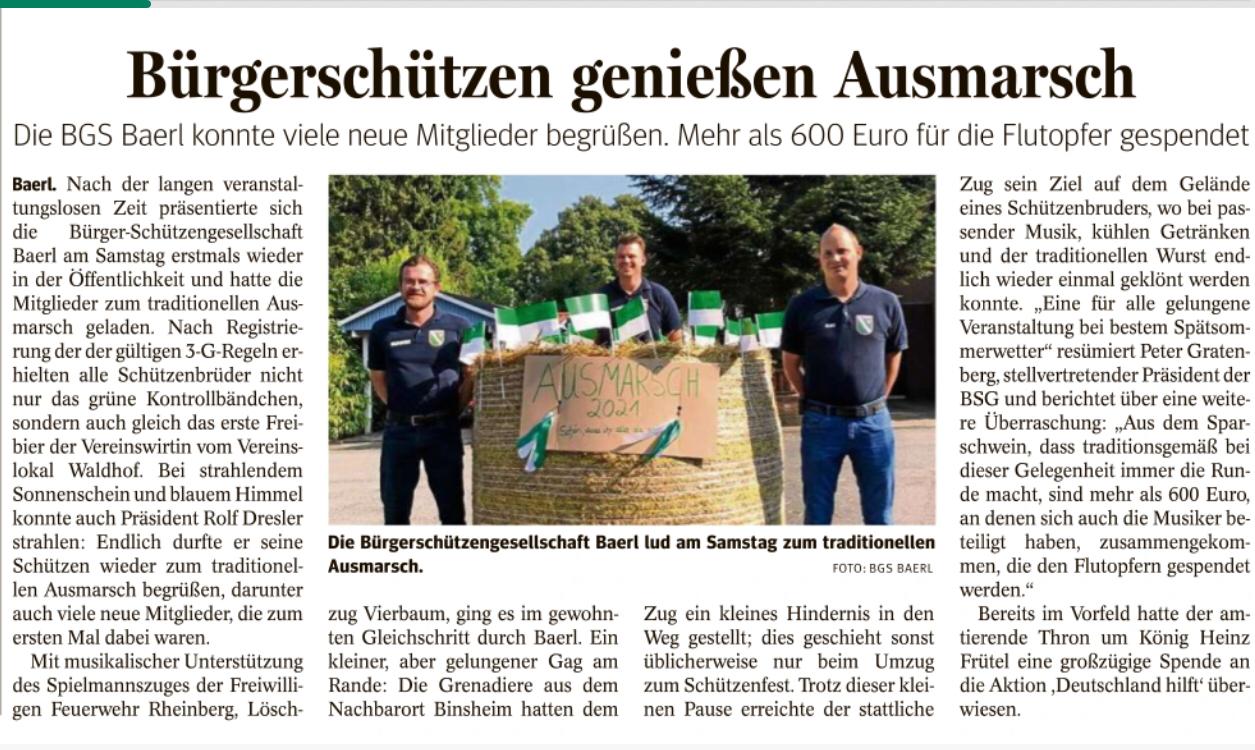 WAZ vom 08.09.2021: Bürgerschützen genießen Ausmarsch