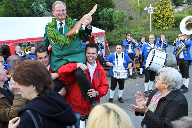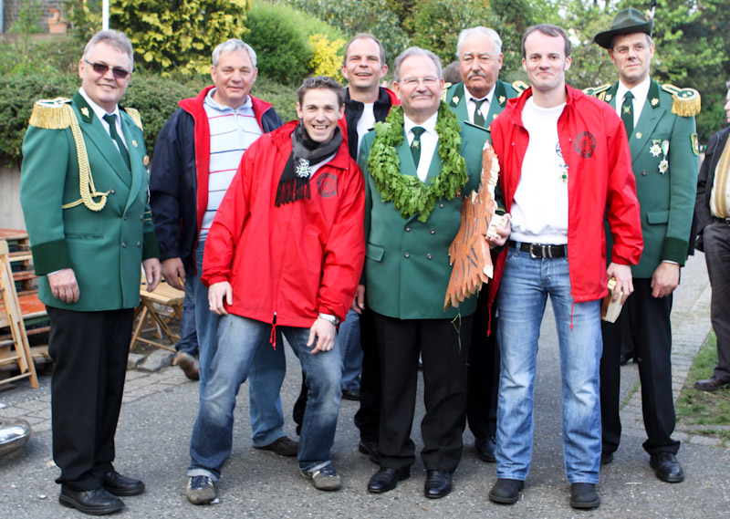 Immer wieder angefeuert von der doch noch ansehnlichen Zuschauerkulisse, dauerte es mehrere Stunden, ehe der Vogel nach dem 281. Schuß seinen Widerstand aufgab, die Stange im senkrechten Fall verließ und Gottfried Kuhlen nach 1989 zum zweiten Mal zum Kaiser machte.