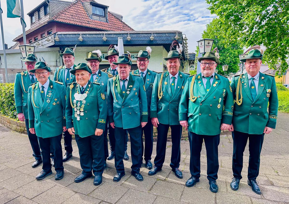Das erste Offizierstreffen fand am 07.01.2023 im Vereinsheim Waldhof satt, dort wurde das Jahr mit allen Aktivitäten durchgesprochen. Die erste große Veranstaltung war der Ausmarsch am 22.04.2023,zu unserem Alters König Christian Lohmann der dieses Jahr sein 60 jähriges Thronjubiläum feiern durfte, wozu er die BSG auf seinem Hof eingeladen hatte. Zugleich ist er auch der
